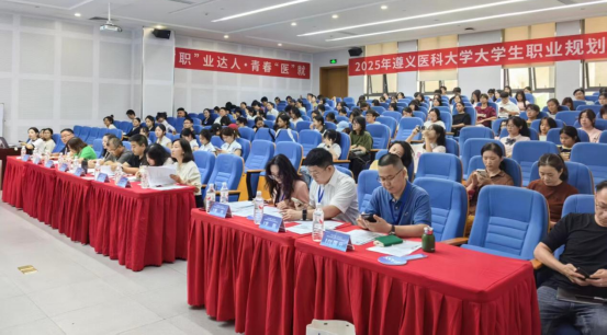 为深入贯彻落实就业优先战略,引导学生树立科学的成才观与就业观,强化职业规划意识,9月28日下午,遵义医科大学以“‘职’业 达人·青春‘医’就”为主题的职业规划大赛在新蒲校区图书馆多功能1号厅、3号厅顺利举行。大赛邀请遵义市就业局、遵义医科大学附属医院人事处相关领导、高校就业指导专家及企业人力资源总监组成评审团,各院系师生代表共计400余人现场观赛。