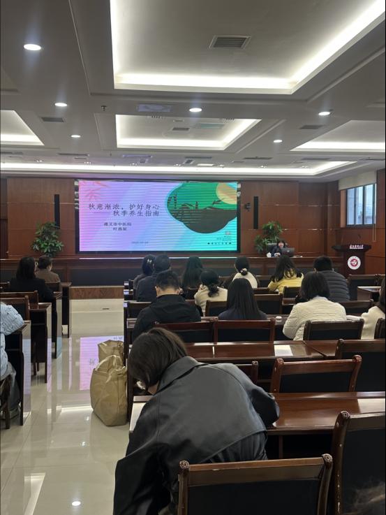 活动邀请了遵义市中医院肿瘤科副主任、副主任医师叶燕妮开展健康知识讲座。叶燕妮的讲座图文并茂,她以中医秋季养生理念为切入点,结合饮食、作息、锻炼等方面进行深入细致的讲解,指导大家如何在日常生活中修养身心,保持身体健康,并提醒大家要保持良好的生活习惯、加强身体素质锻炼。