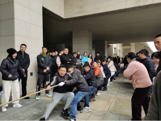 随着裁判员一声清脆的哨响,参赛队员们瞬间进入状态,他们紧握长绳、身体后倾、双脚蹬地,心往一处想、劲往一处使,全力以赴、奋力拼搏。热情的啦啦队在一旁呐喊助威,加油声此起彼伏,为参赛队伍注入了源源不断的动力,充分展现出我校教职工团结协作、拼搏向上的精神面貌。