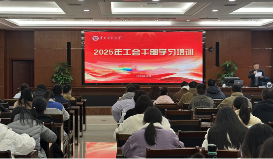 为认真学习贯彻党的二十届四中全会精神、习近平总书记在庆祝中华全国总工会成立100周年暨全国劳动模范和先进工作者表彰大会上的重要讲话精神,12月10日下午,我校在新蒲校区行政楼一楼多功能厅举行2025年工会干部学习培训会。学校各级工会干部和新入职职工100余人参加。