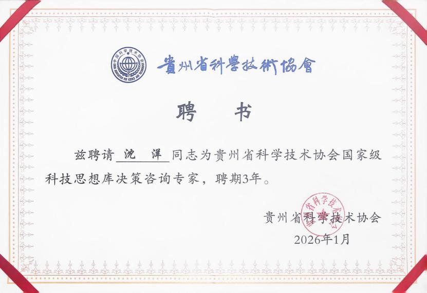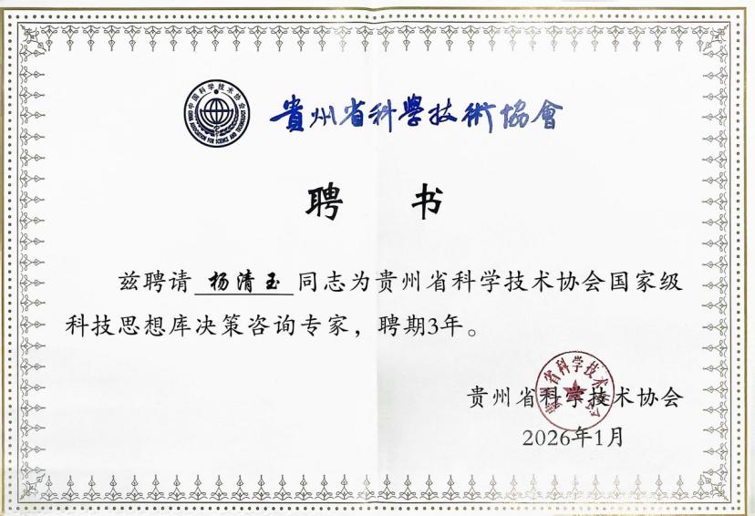 据悉,本次专家遴选由各单位根据入库专家条件限额择优推荐,最终省科协以严格标准和严密程序从二百余名候选人中遴选出52名专家纳入国家级科技思想库(贵州)专家库管理。我校两位教授成功入选国家级智库,展现学校在决策咨询工作上取得新成效,拓展学校资政建言和社会服务新通道,为经济社会发展提供更有力的人才保障和智力支撑。(撰稿:毛伽,图片来源:省科协;审核|一审:李晓,二审:上官腾飞,三审:杨清玉)
