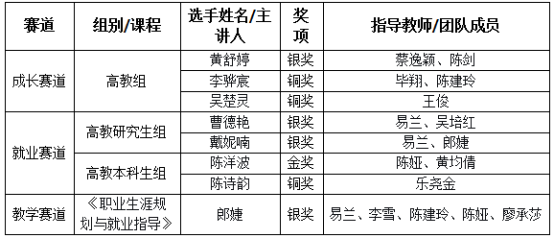 近年来,学校始终将大学生职业生涯规划教育作为人才培养的重要环节,通过完善课程体系、加强师资队伍建设、搭建实践平台等多项举措,不断提升学生的职业规划能力和就业竞争力。此次优异成绩的取得,既是参赛师生辛勤付出的成果,也是学校深化教育教学改革、推进高质量就业工作的生动体现。(撰稿:龚喜、郎婕;审核|一审:肖永霞,二审:易兰,三审:杨清玉)